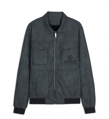 GREY LEATHER JACKET WITH 2 BOX POCKETS WITH LEFT CHEST PRINTING
