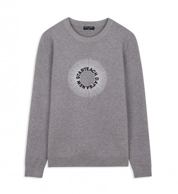 GRAY SWEATER WITH WHITE CIRCLE EMBROIDERED ON FRONT